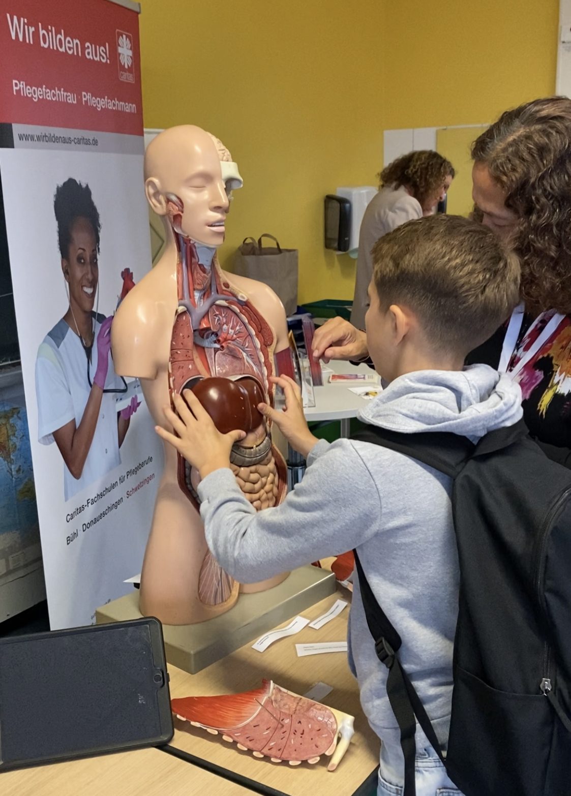 Am Stand der Caritas-Pflegeschule konnten die Jugendlichen ihr Anatomie-Wissen unter Beweis stellen.