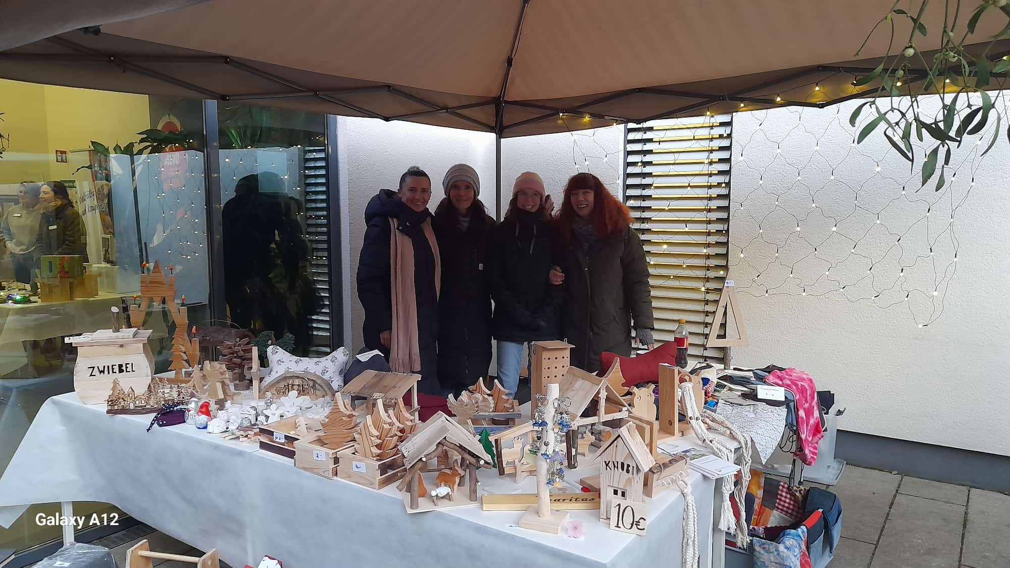 Mitarbeiter*innen der Caritaswerkstatt Weinheim waren am 30. November mit einem eigenen Stand auf dem Adventsmarkt in der Burggasse in Weinheim präsent. Hier wurden vor allem selbst hergestellte Produkte aus Holz angeboten, wie Krippen, Tannenbäume, Engel und Sterne, aber auch selbst gezimmerte Kartoffelkisten, Frühstücksbrettchen und vieles mehr. „Der Adventsmarkt war gut besucht und wir haben vor allem Engel, Winterlandschaften, Sportbeutel und Gipsweihnachtsfiguren verkauft“, berichtet Kathrin Hartmann, Leiterin der Caritaswerkstatt Weinheim. „Wir konnten wieder viele gute Gespräche auch mit ehemaligen Klient*innen, Betreuer*innen und Kooperationspartnern führen“, ergänzt sie.