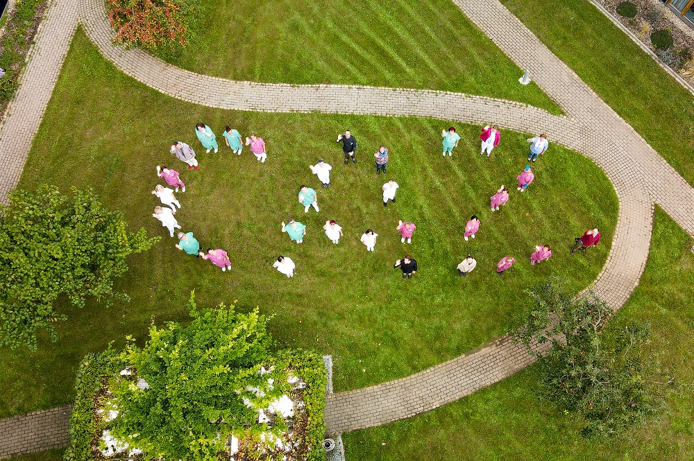 Unter dem Leitwort „Mit Menschen für Menschen“ bringen wir unsere Pflegeaufgabe auf den Punkt. Wir wollen ein Ort sein, an dem sich Bewohner*innen und Mitarbeiter*innen, Angehörige und Freunde treffen und Leben teilen. Wir wollen unsere Bewohner*innen mit ihren eigenen Lebenserfahrungen, sozialen, kulturellen und religiösen Bedürfnissen wahrnehmen, respektieren und sie bei schwindenden eigenen Kräften unterstützen. Vertraute Lebensgewohnheiten versuchen wir im Rahmen unserer Möglichkeiten zu erhalten.