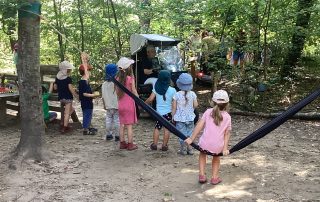 Simone Parison vom Waldkindergarten „Die Waldwichtel“ hatte die zauberhafte Idee, Jung und Alt zusammenzubringen und die Bewohner*innen des Caritas-Seniorenzentrums in den Waldkindergarten eingeladen.