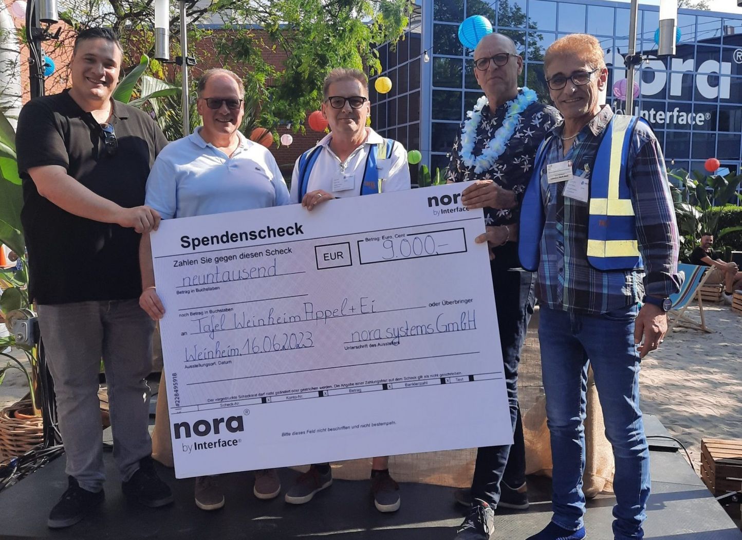 Mitarbeitende und Geschäftsführer von nora systems spenden 9.000 Euro an die Tafel Weinheim