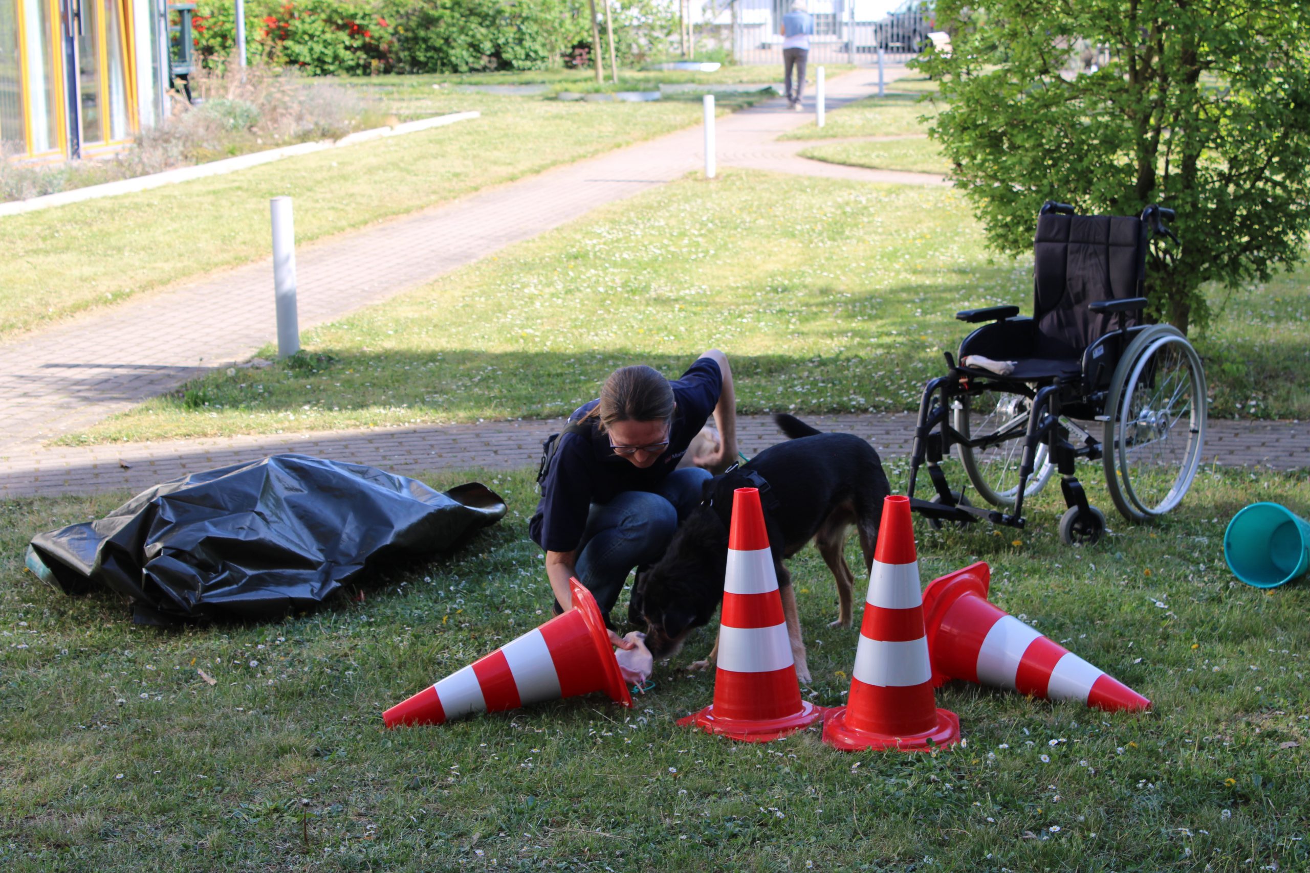 Die Besuchshunde des Malteser Hilfsdienstes aus Schwetzingen, die sich noch in der Ausbildung befinden, haben sich an dem Wochenende für eine Trainingsstunde im Garten des Altenzentrums angekündigt. Die ausgebildeten Hunde werden den Bewohner*innen bald regelmäßig einen Besuch abstatten und Ihnen den Alltag verschönern.