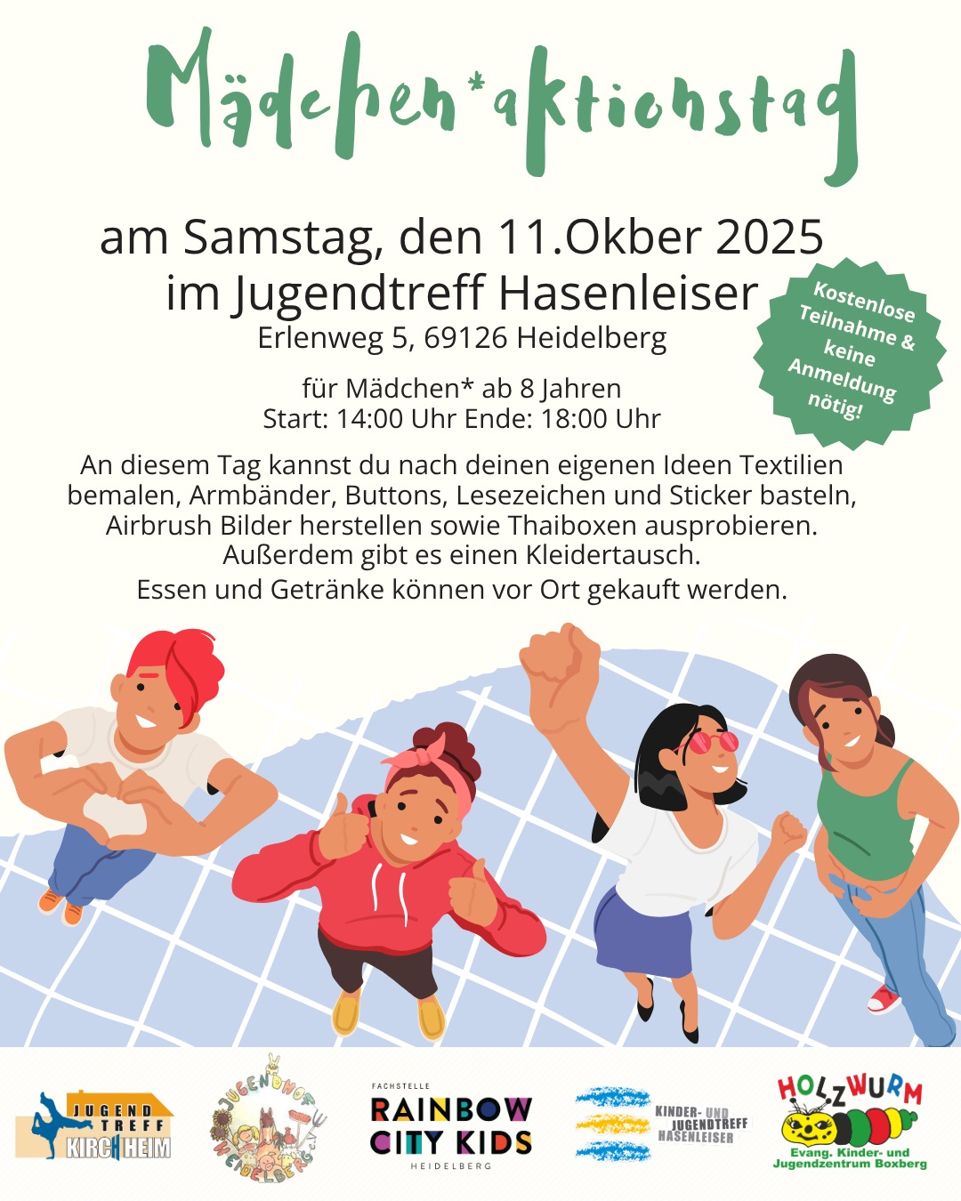 Der Kinder- und Jugendtreff Hasenleiser ist eine offene Einrichtung für alle Kinder und Jugendlichen von 6 bis 18 Jahren. Wir sind ein offener Treff und bieten euch ohne Anmeldung oder Verpflichtungen zahlreiche Möglichkeiten und viel Platz bei gutem sowie bei schlechtem Wetter, um neue Leute kennen zu lernen und Spaß zu haben. Kommt einfach mal vorbei, denn es ist keine Anmeldung erforderlich. Der Besuch ist kostenfrei. Ihr entscheidet selbst, wann ihr kommen und gehen möchtet.