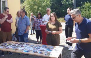 Zum Sommerfest der Caritaswerkstatt Weinheim, das traditionell für Klient*innen und Mitarbeiter*innen ausgerichtet wird, war dieses Jahr auch eine Klasse der F+U Berufsfachschule für Arbeitserziehung und -therapie Heidelberg in die Eisleberstraße gekommen.