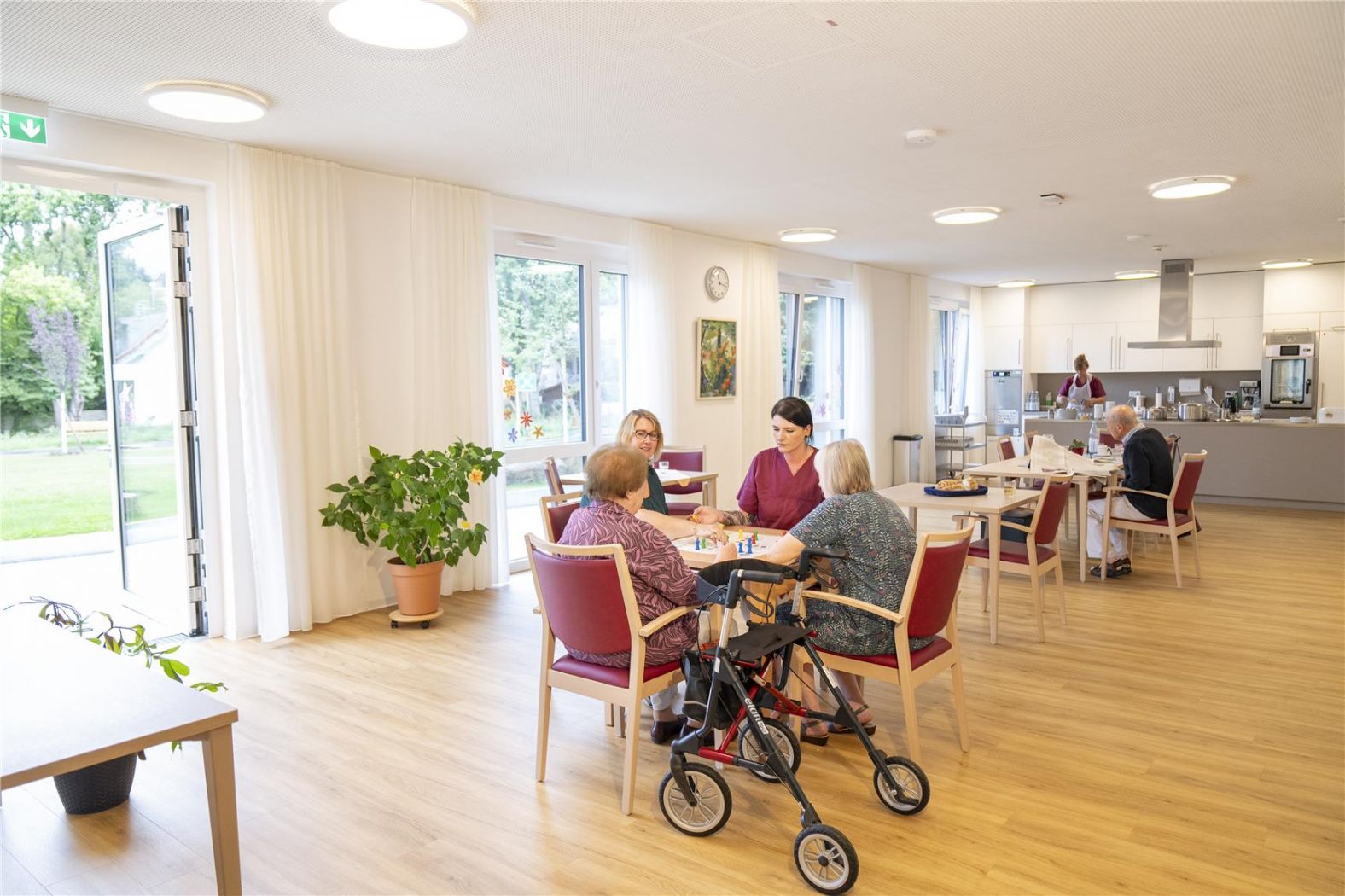 Das Pflege- und Betreuungsteam unserer Einrichtung begleitet die Gäste kontinuierlich in ihrem Tagesablauf, nach dem Prinzip der Bezugspersonenpflege. Die verbleibenden Fähigkeiten und Bedürfnisse der Gäste sind die Vorgabe in der Gestaltung der räumlich-sozialen und organisatorischen Umwelt.